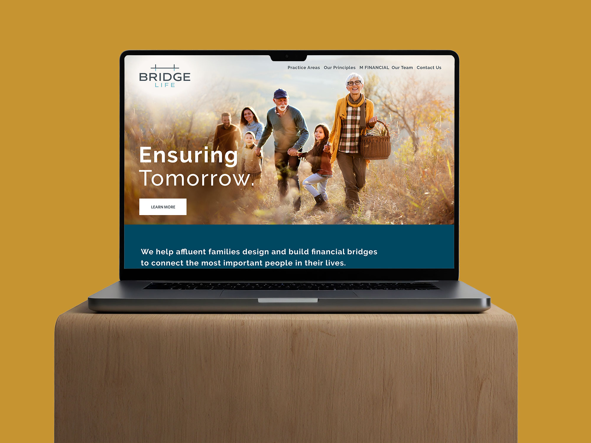 Nichez partnered with Bridge Life to develop a cohesive and sophisticated visual identity that reflects the firm’s expertise in designing and managing life insurance portfolios for affluent families within the context of their estate and business plans. The collaboration began with a logo design that conveys trust, longevity, and financial stewardship. Nichez then extended the brand through an elegant brochure design that communicates Bridge Life’s complex services with clarity and refinement. To ensure brand consistency, environmental signage was created to reinforce the firm’s rock solid presence. Finally, Nichez designed a website that unifies these elements in a modern, intuitive digital experience—presenting Bridge Life as a trusted advisor and leader in strategic life insurance management.